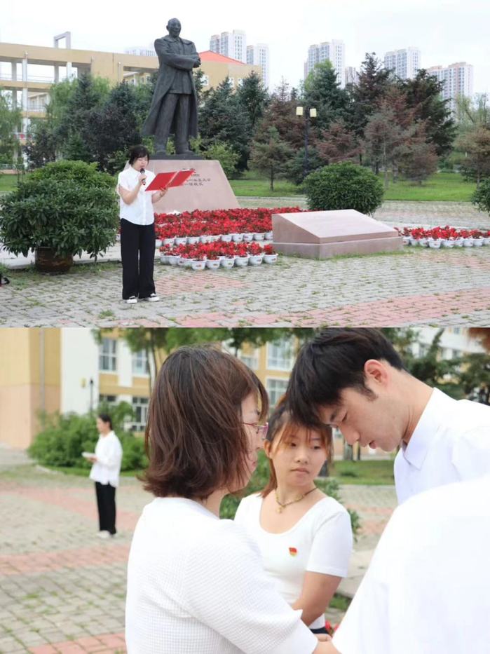 为庆祝中国共产党成立103周年,深入学习和传承伟大建党精神,激励党员不忘初心、牢记使命,踔厉奋发、勇毅前行,6月30日,公司组织师生党员在将军广场王震将军像前开展“传承建党精神,践行入党初心”活动庆祝“七一”党的生日,党委副书记刘芳芳、全体辅导员老师、部分员工党员参加了此次活动,活动由辅导员单宝成老师主持。