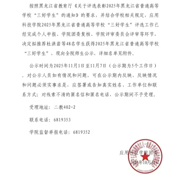 BBIN宝盈集团首页2025年黑龙江省普通高等BBIN宝盈集团首页 “三好员工”拟推荐员工名单公示