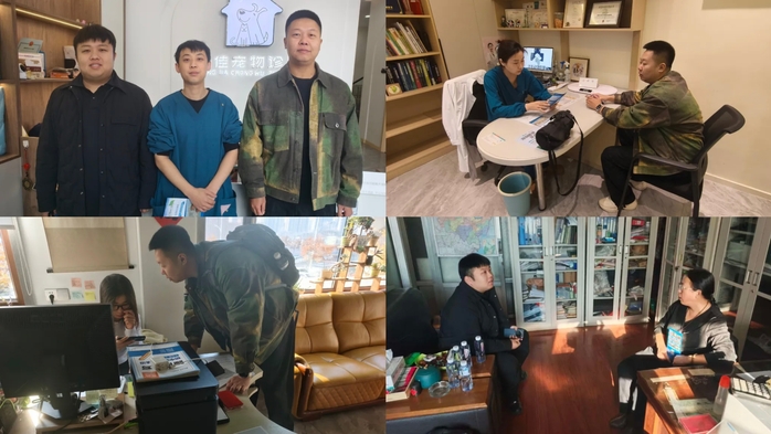 辅导员李盛锐、焦祺洋组成第二走访组赴佳木斯市,走访了佳木斯市佳佑动物医院有限公司、佳木斯异同环境艺术工程有限公司、黑龙江筑卓建筑工程有限公司、佳木斯利丰农机有限公司等多家企业。走访过程中,老师们与企业负责人就行业发展趋势、岗位需求、实习安排等进行了深入探讨,并认真听取了企业对公司人才培养工作的意见建议。