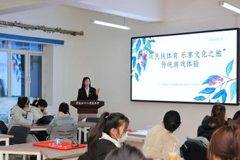 活动伊始,主持人赵琦从中国悠久历史引入,带领同学们走进五十六个民族的文化世界。从傣族泼水节的祝福之水、蒙古族那达慕的草原欢腾,到彝族火把节的炽热盛宴,一个个生动的民族节庆场景徐徐呈现;维吾尔族木卡姆艺术、藏族锅庄舞、苗族银饰锻造技艺等艺术瑰宝,以及赫哲族渔猎文化、土家族吊脚楼营造技艺等独特习俗,让同学们深刻感受到各民族文化的深厚底蕴与智慧。