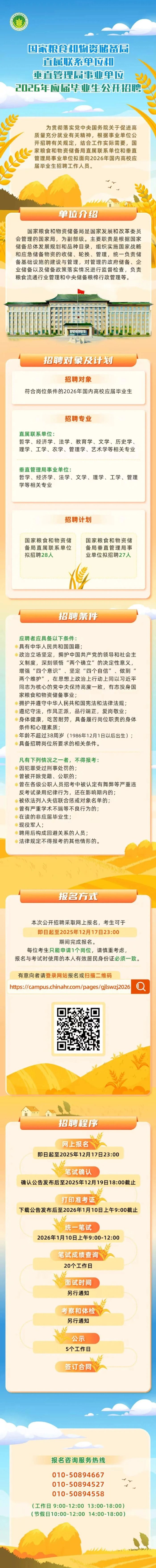 招聘信息 | 国家粮食和物资储备局2026年应届毕业生校园招聘