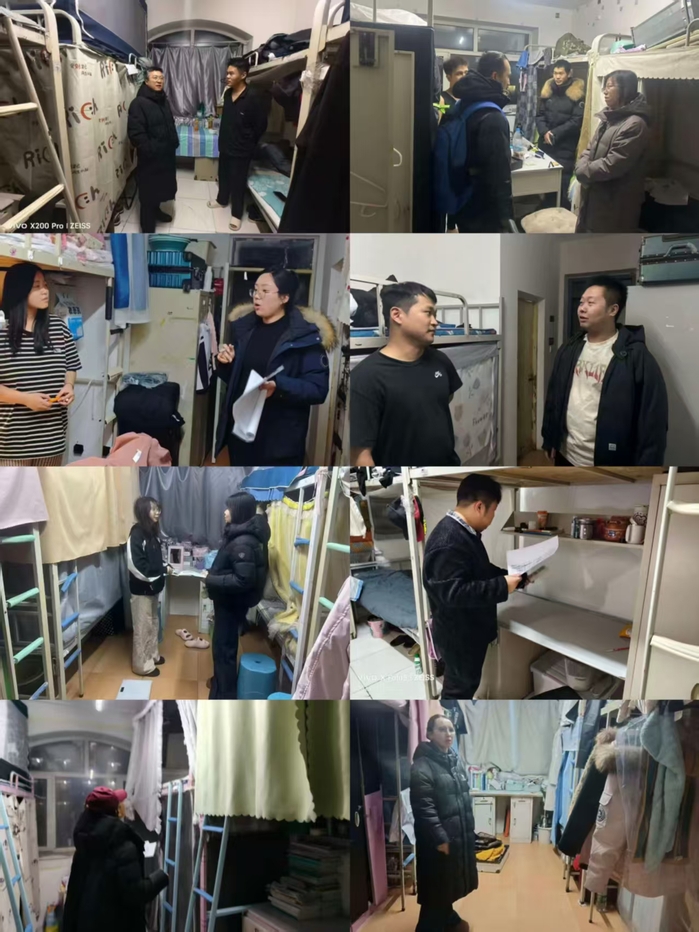 以“查寝”排查安全隐患,夯实校园安全基础。针对元旦假期与期末备考特殊阶段,公司全体辅导员增加查寝频次,对员工寝室进行全覆盖、无死角的安全排查。公司党委书记高波、副书记刘芳芳带队走访员工公寓,重点检查用电安全,严禁使用大功率电器、私拉电线等行为;全面排查消防隐患,确保消防通道畅通、消防设施完好;同时关心员工出勤与思想状况,及时疏导备考压力,提醒员工合理作息、注意财物安全。通过常态化查寝,切实将隐患消除在萌芽状态,为员工营造安全舒适的住宿环境。