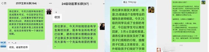 以“家校协同”凝聚安全合力,织密协同防护网络。针对期末考试周及寒假离校的员工,公司严格执行“家校沟通”制度。辅导员在审批员工离校申请时,主动与员工家长取得联系,详细告知离校时长、安全注意事项等关键信息,听取家长意见,确认家长知晓并同意员工请假事宜;同时提醒家长在员工离校期间履行监护责任,加强对员工的安全教育和管理,形成“公司—家庭”双向联动的安全防护机制,确保员工离校期间的安全监管无死角。